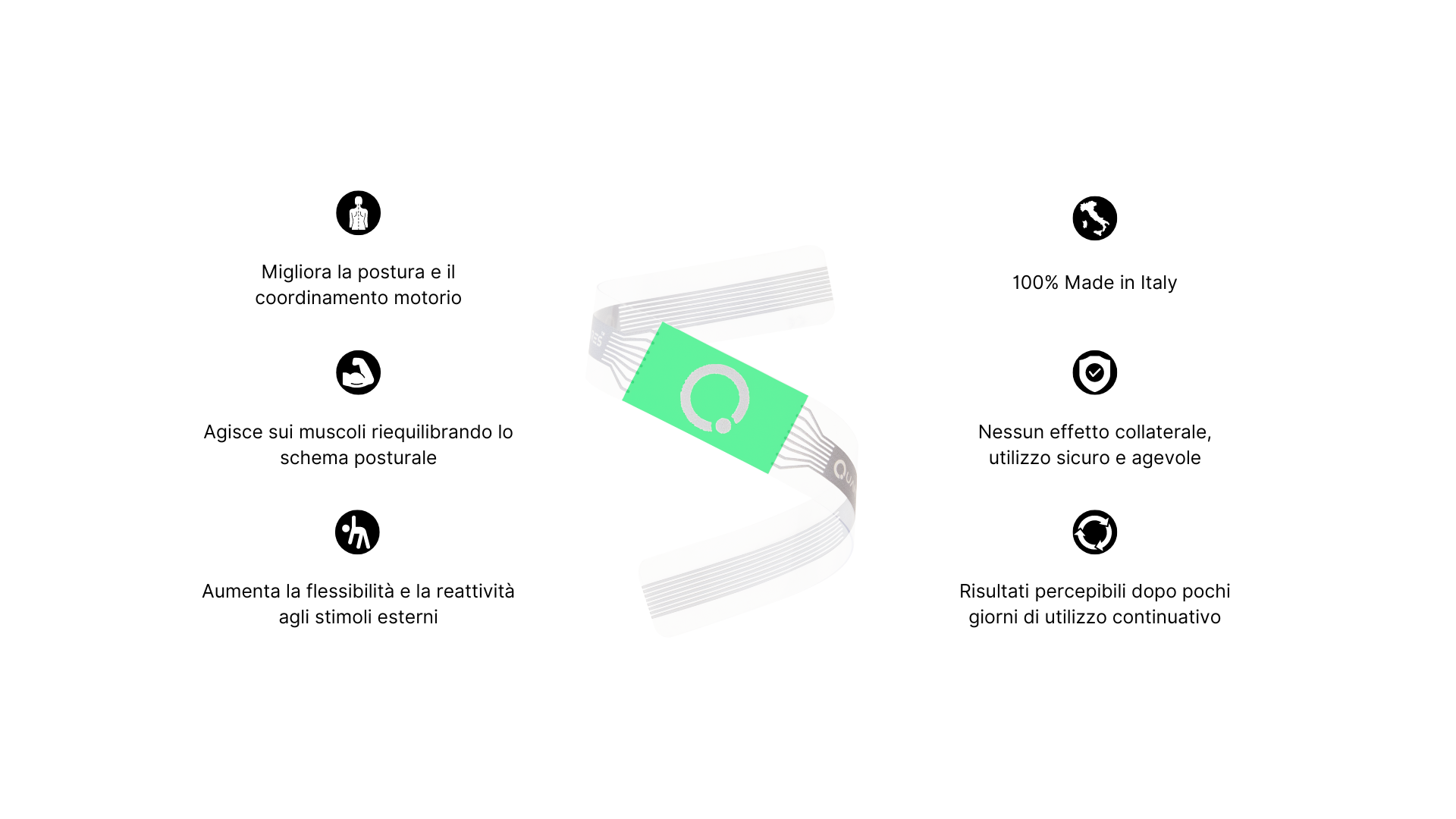 Con una combinazione di tecnologia avanzata, ricerca scientifica e Made in Italy, il nostro bracciale offre un supporto efficace per migliorare la postura, ridurre i fastidi muscolari e promuovere un migliore equilibrio, flessibilità e coordinamento motorio.